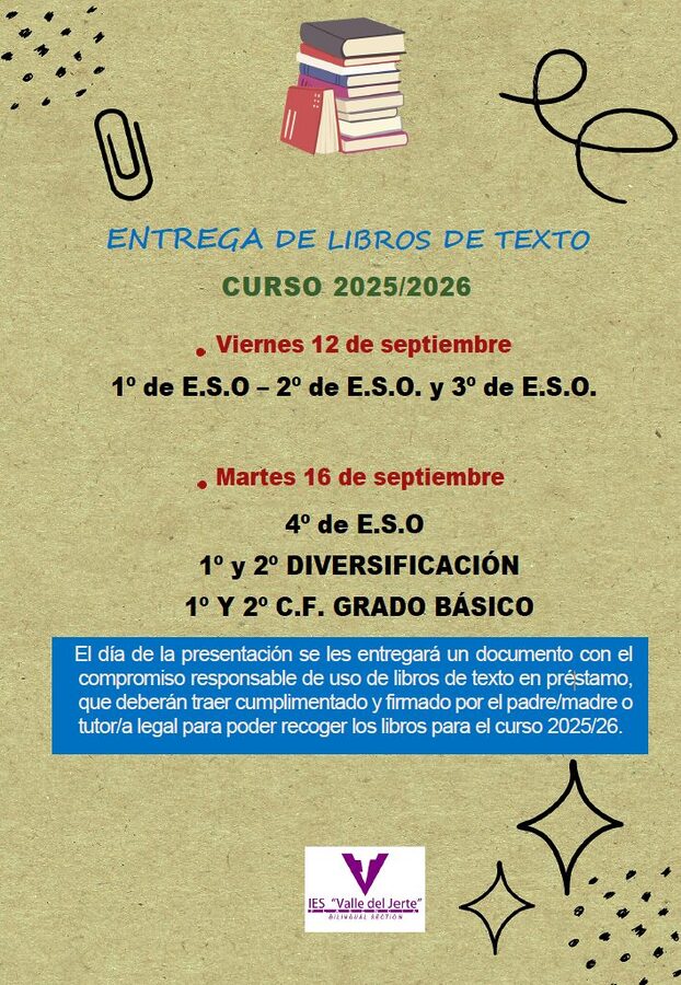ENTREGA DE LIBROS DE TEXTO DEL CURSO 2025/2026